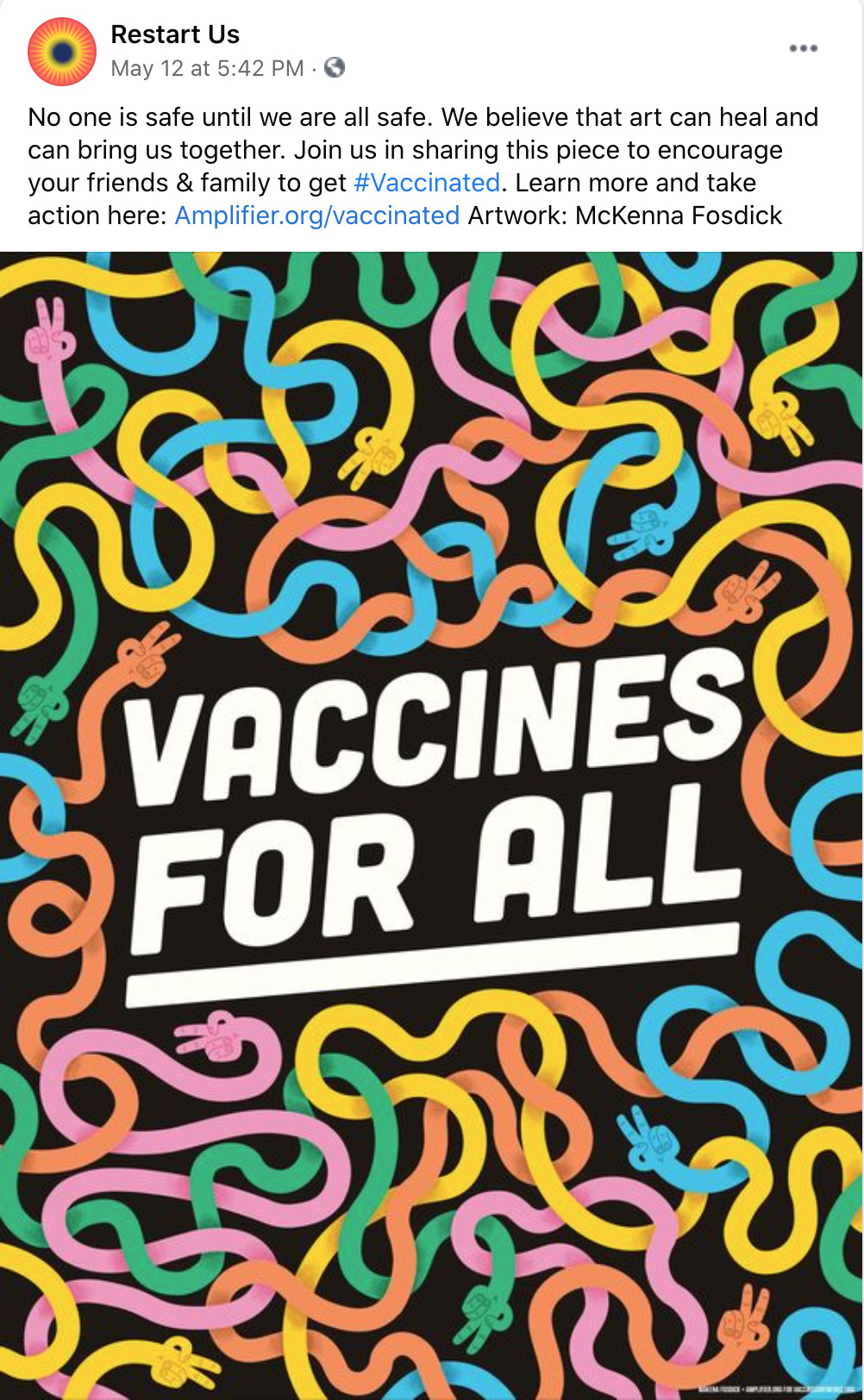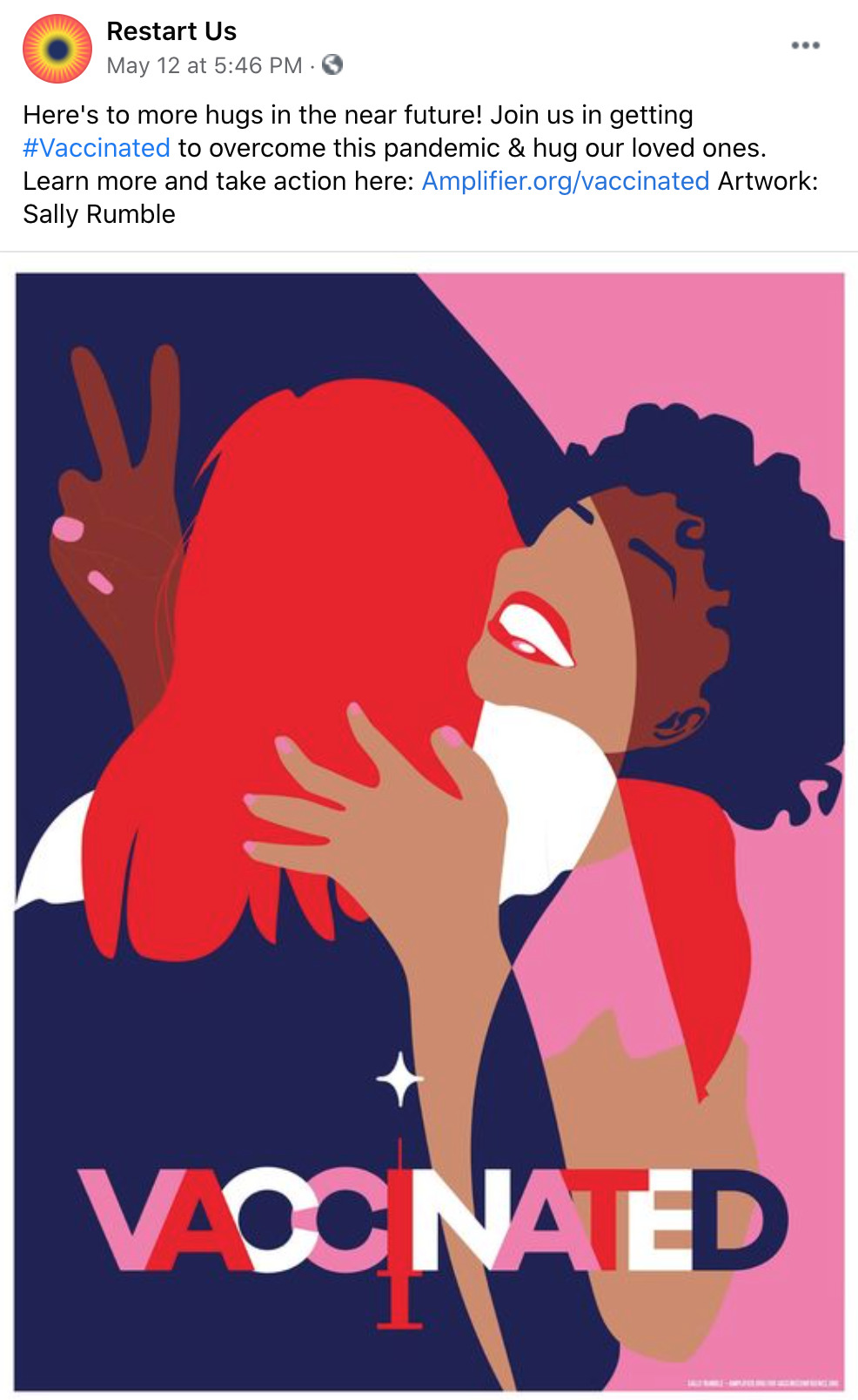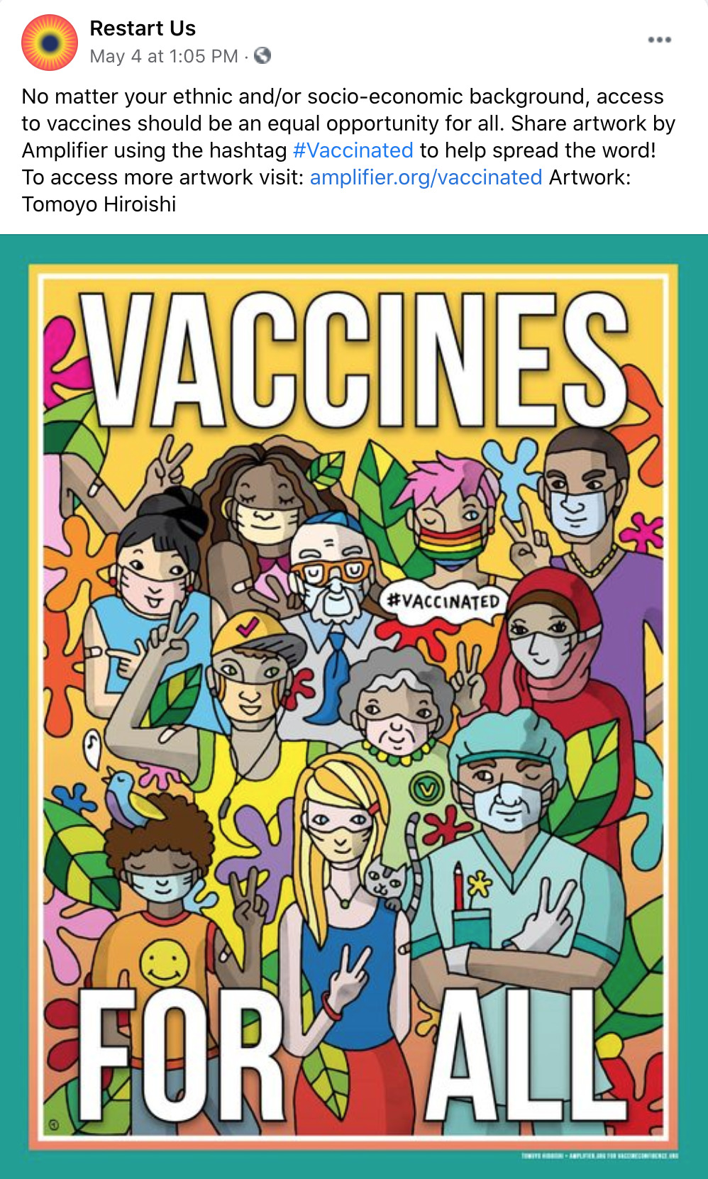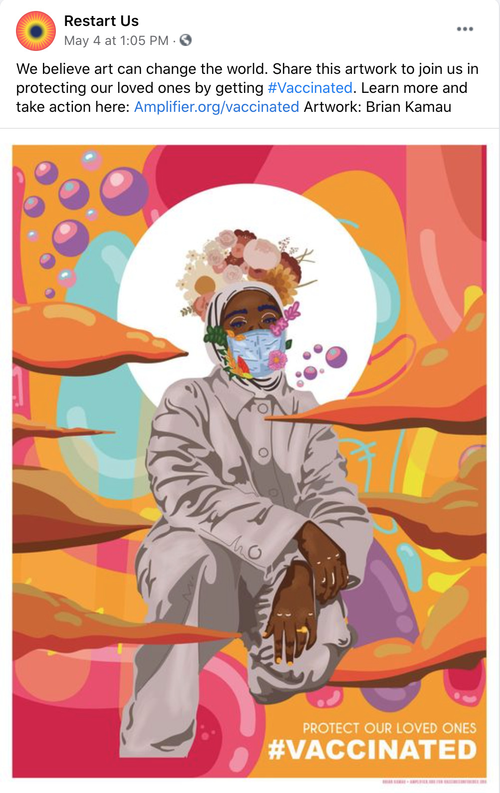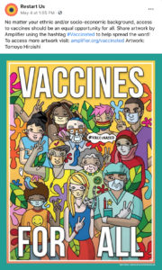 Amplifier is a Seattle-based nonprofit design lab started by Aaron Huey. It deploying artist-created visual content to shift culture of vaccine apprehension and increase adoption. We have partnered with Facebook on this campaign who is offering free post-boosting to any partner who posts this rich content.