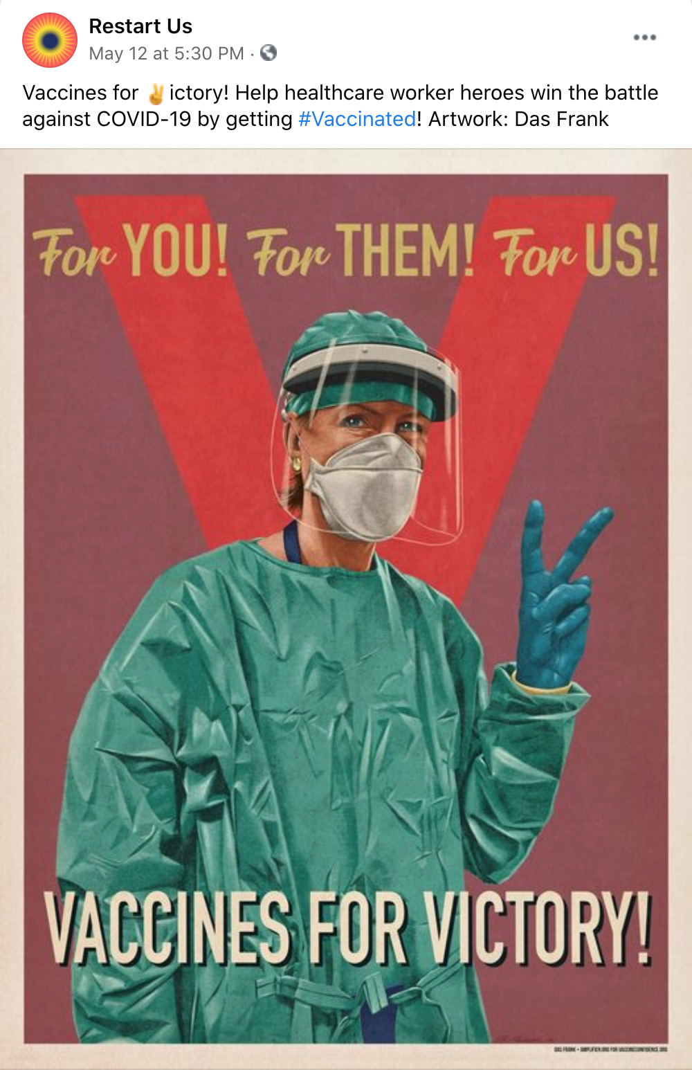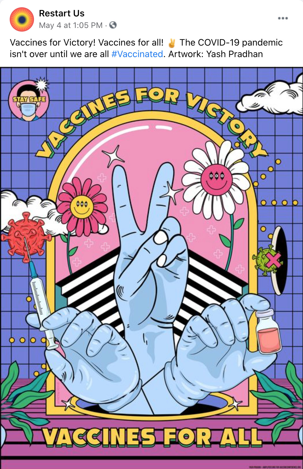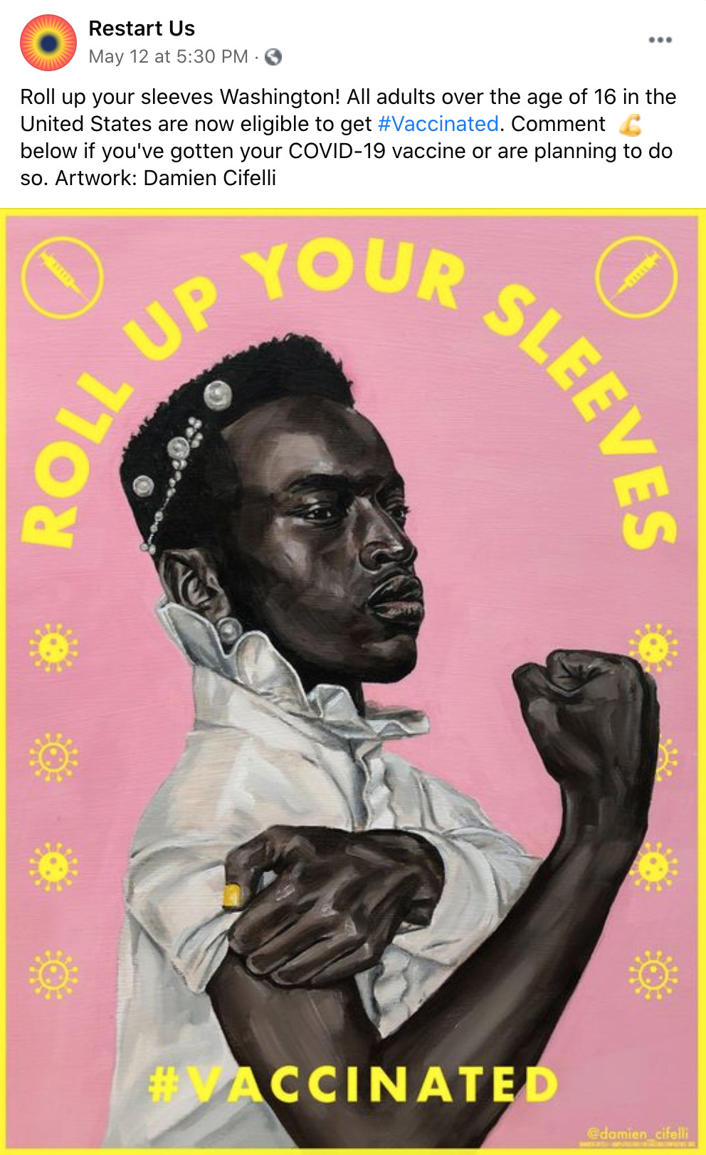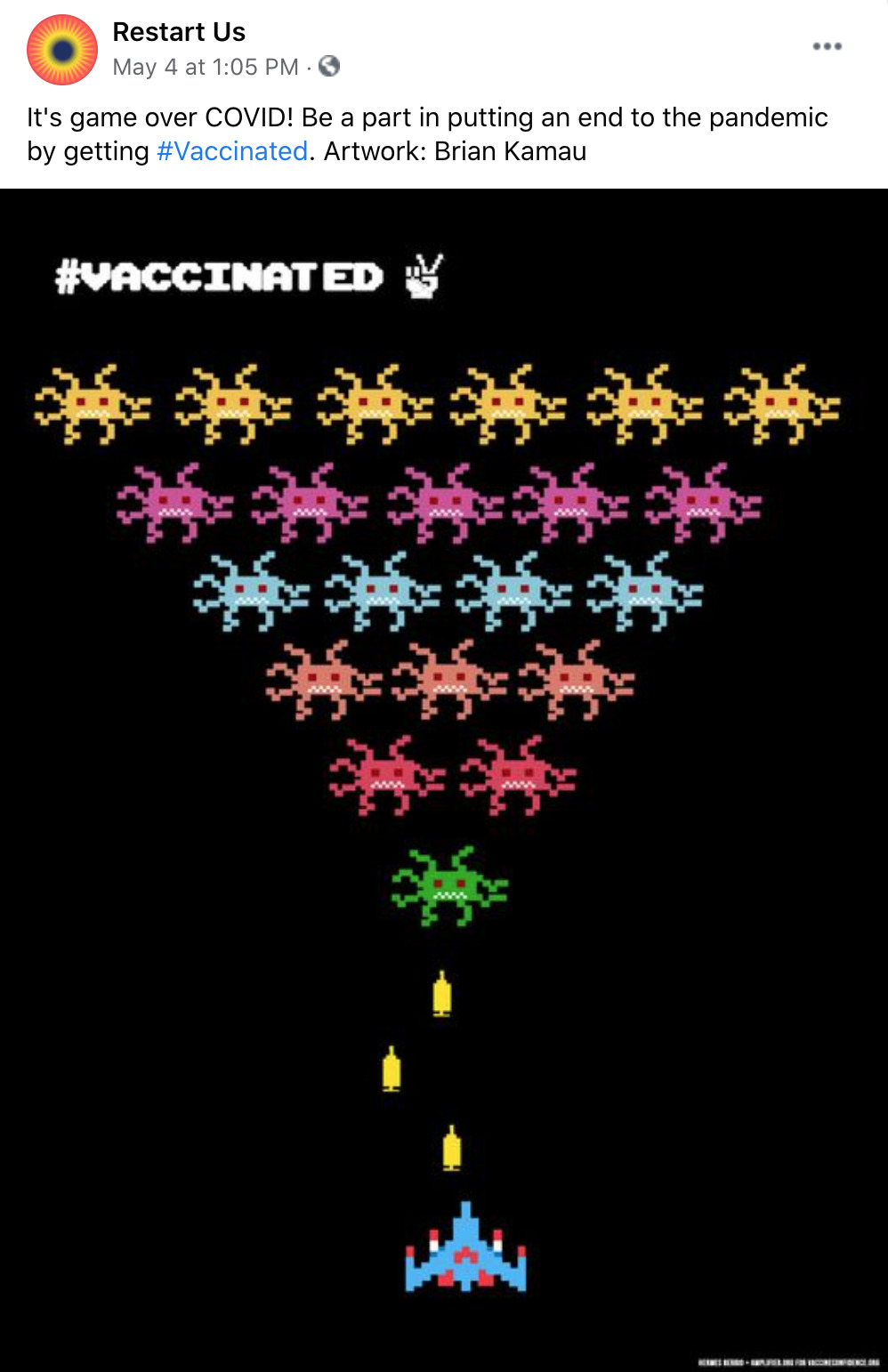 Amplifier is a Seattle-based nonprofit design lab started by Aaron Huey. It deploying artist-created visual content to shift culture of vaccine apprehension and increase adoption. We have partnered with Facebook on this campaign who is offering free post-boosting to any partner who posts this rich content.