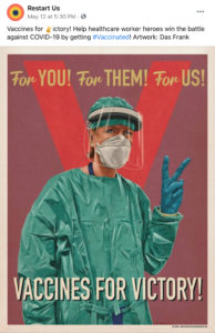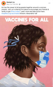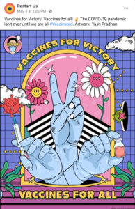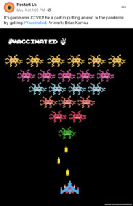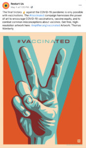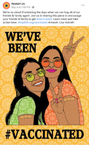 Restart is working with Facebook and the UW Communication Leadership Team to launch an Amplifier #Vaccinated social media campaign to help encourage COVID-19 vaccinations and vaccine equity. More details at: Amplifier #Vaccinated Campaign – Restart.