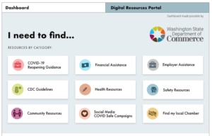 The Digital Resource Portal is the companion to the Dashboard. It is an online destination for small business tools and resources accessible to business owners and to the public. This portal will point to relevant state-wide resources and include our business support tools, adoption toolkit, and creative messaging strategies and content for small businesses.